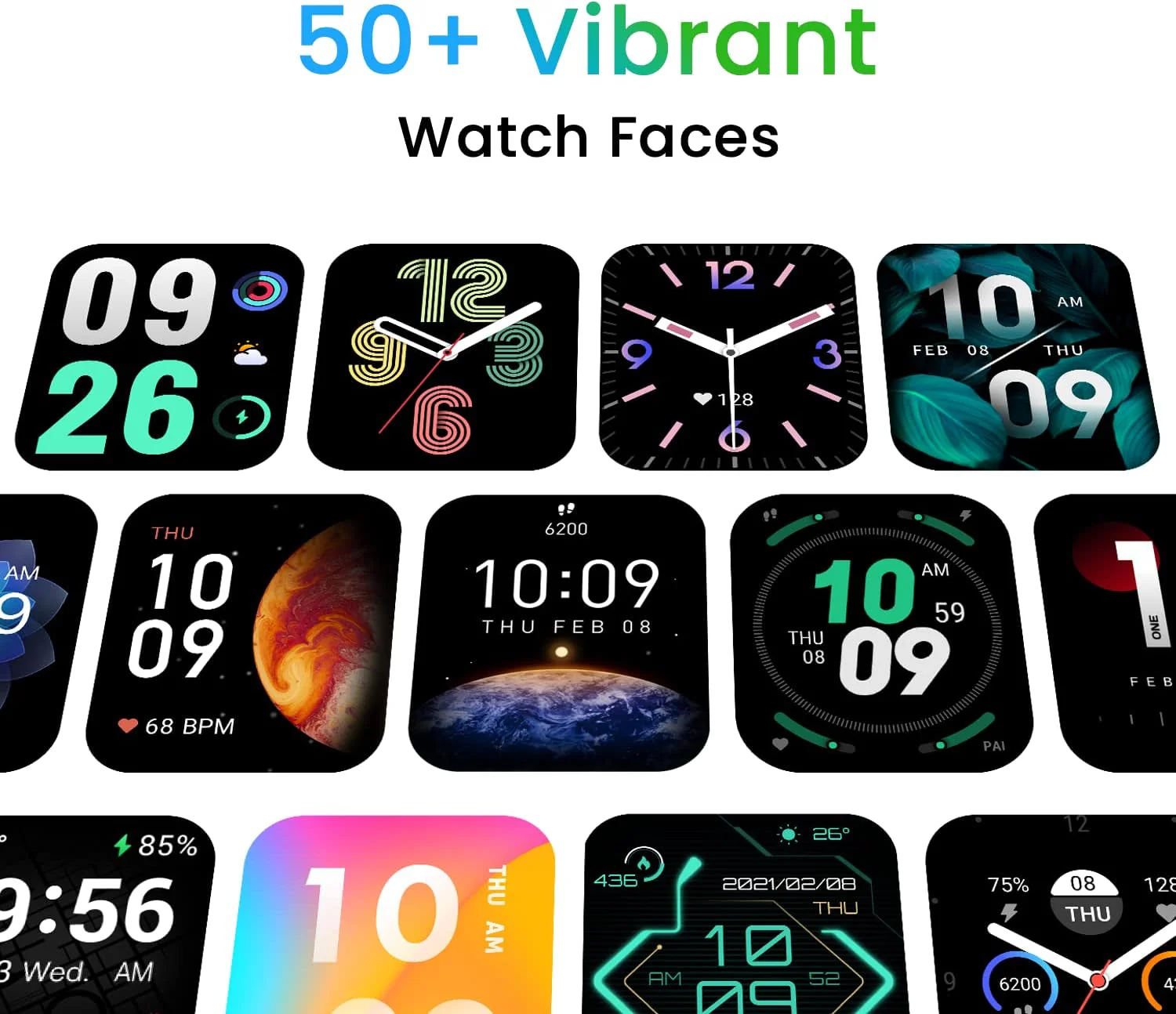 【شاشة كبيرة وكبيرة وأنيقة】انغمس في شاشة عالية الدقة مقاس 1.7 انش وكبيرة وملونة وشاهد جميع النصوص والمكالمات الواردة بجودة رائعة وواسعة. عبّر عن نفسك مع أكثر من 50 وجهًا للساعة ووجوه ساعة قابلة للتعديل – أو قم بتخصيصها باستخدام صورك الخاصة.. الاستخدام المدعوم: قياس الأكسجين في الدم، مراقب معدل ضربات القلب، متتبع الرياضات المتعددة، وسائل التواصل الاجتماعي، عداد الخطوات. تقنية التوصيل: بلوتوث. معيار الاتصالات اللاسلكية: بلوتوث
