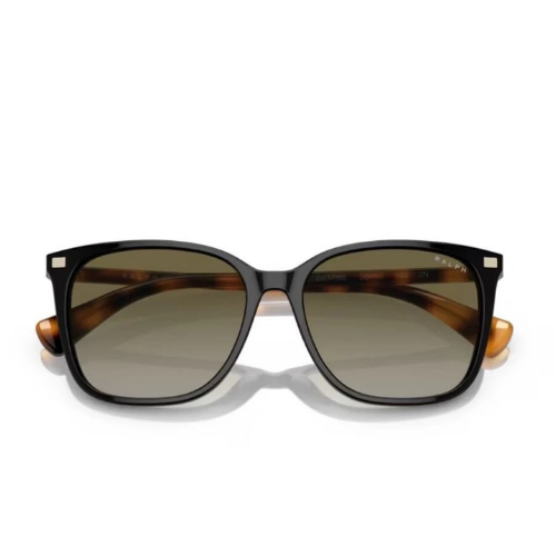 رالف لورين Vvcv RA5293 60378E 56 نظارة شمسية باللون الأسود اللامع. يكتمل إطار اللون الأسود اللامع 60378E بعدسات متدرجة باللون الأخضر. يتميز هذا الموديل بشكل مربع من البلاستيك بمقاسات 56-16-145.