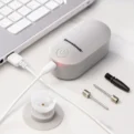 A portable and rechargeable 2-in-1 vacuum pump and inflator with a compact and lightweight multifunction design that hardly takes up space, making it easy carry and use anywhere. It can be used for vacuum packaging, as it extracts air from valve bags for clothes, food, etc. As it can also act as an inflator, it can be used to inflate or deflate sports or aquatic objects (such as balls, floats, etc.). It works in cycles of 10 min and switches off automatically. Includes inflation and suction accessories: 2 metal needles, 1 plastic nozzle for compression function and 2 suction nozzles to adapt to vacuum bags (compatible with all valved vacuum bags).